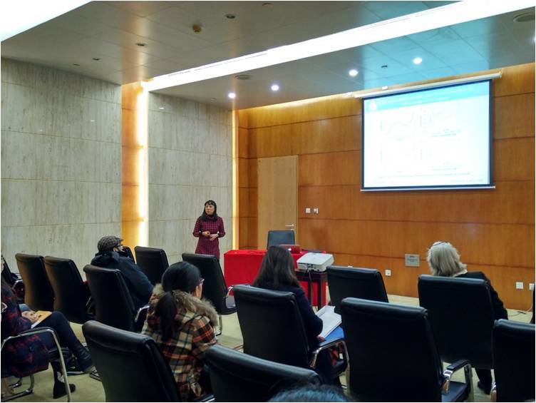 本次交流会由国际交流处童骏老师主持。Kristin Bartik教授的报告题目为“Engineered Colloids for Recognition and Sensing in Water”的报告。