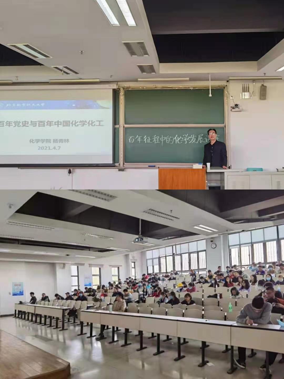 同一时间,学院邀请学院党委委员、立德树人优秀奖获得者杨青林老师在沙河校区J3-211为米兰milan官方网站学生作题为“百年征程中的化学发展”主题报告。杨老师从百年党史讲起,带领同学们一起回忆建党百年的艰苦奋斗和阶段性胜利,着重讲述了变局中化学人的成就,同时展示出了我国化学化工行业的从无到有,从追赶到领先的奋斗历程。