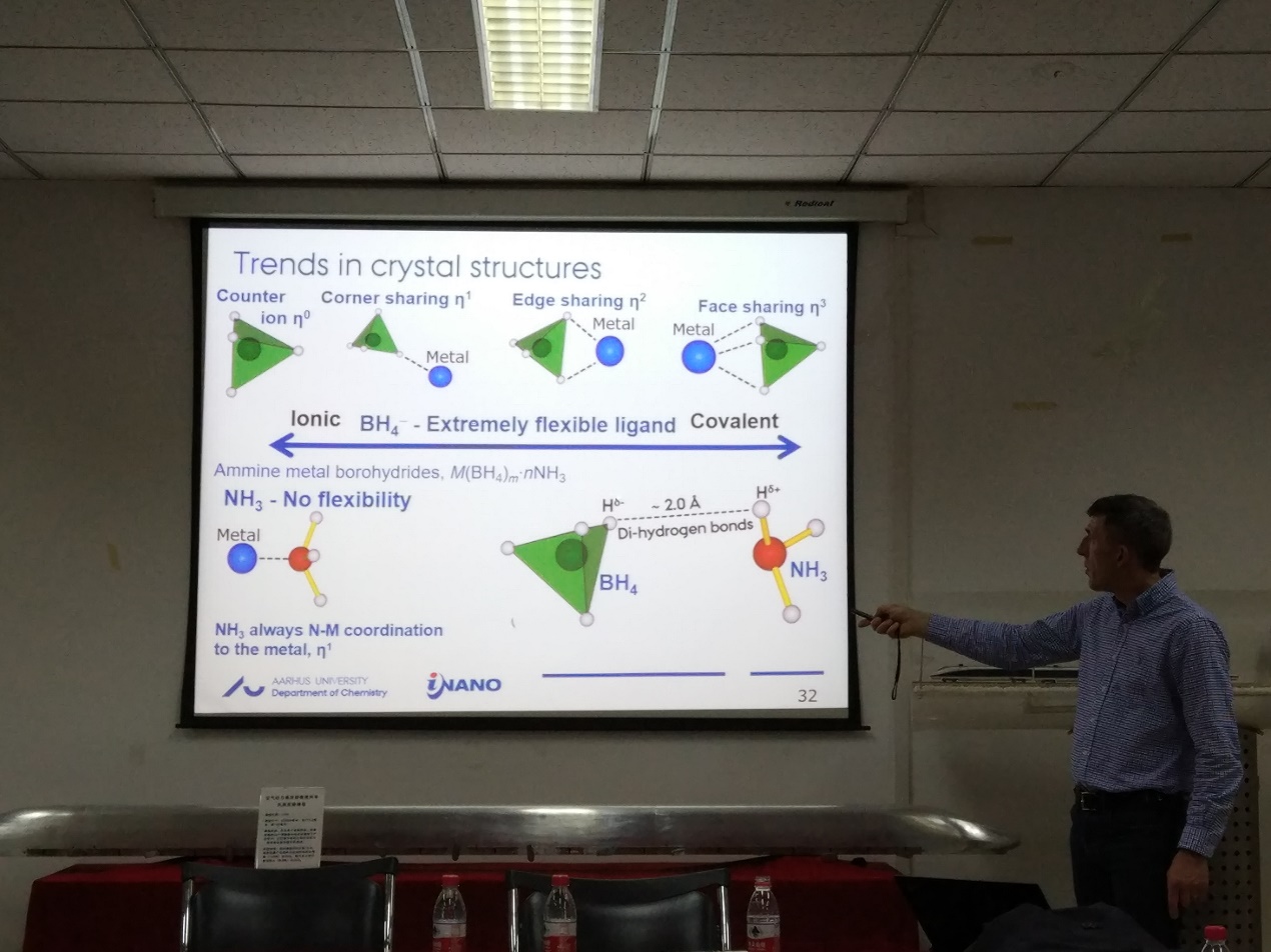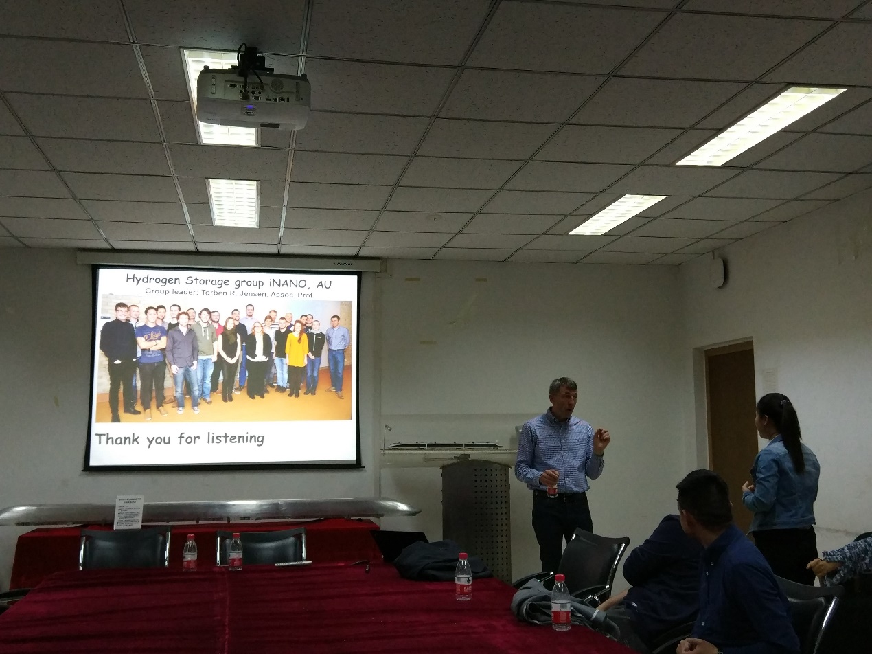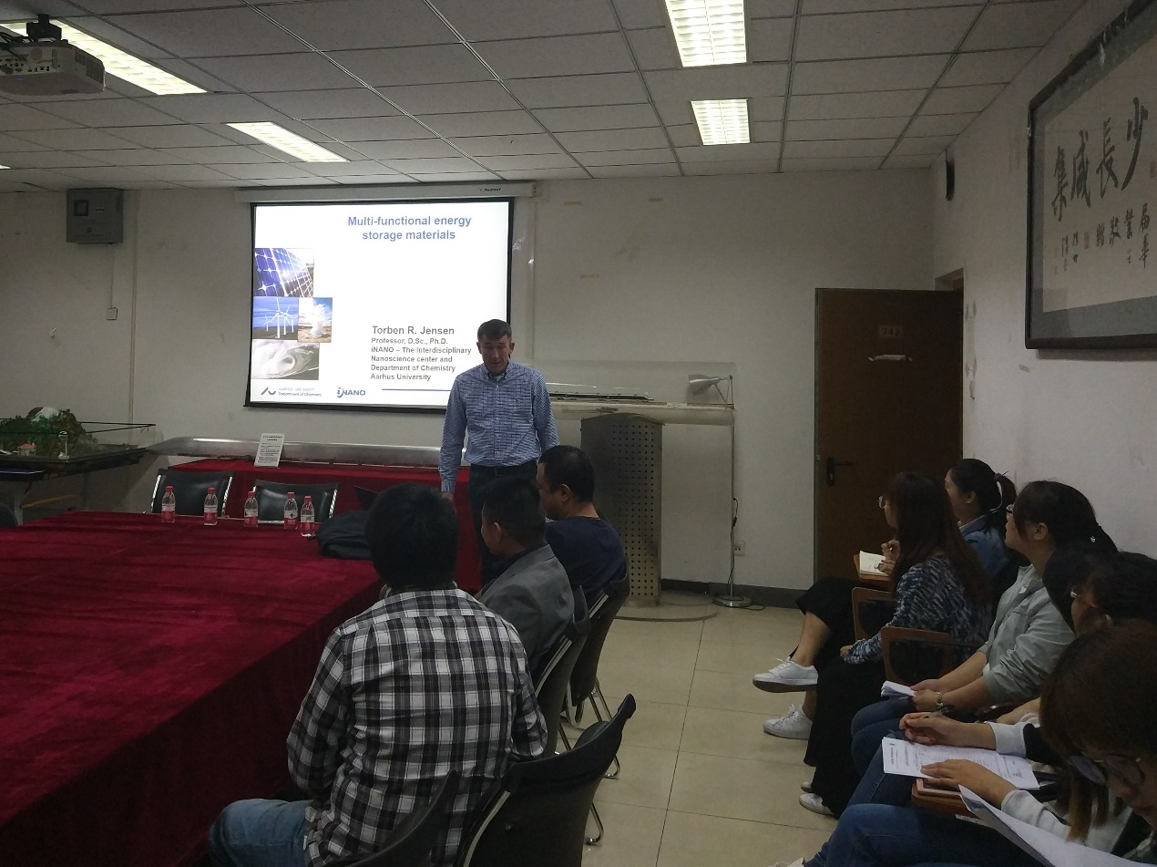 本次报告由米兰官网教师张瑜研究员主持,吸引了全院众多师生到场聆听。TorbenR. Jensen教授的报告题目为“Hydrides for Multi-FunctionalEnergy Storage Applications”。Torben教授首先对奥尔胡斯大学科学与技术学院的整体状况进行了简短的介绍,使同学们对该校有了一个全面的认识,随后对自己在多功能储能材料的科研工作进行了详细的介绍。他先简单介绍了氢能源,被认为是一个潜在的非常有趣的能量载体,它可以促进可再生能源分布不均的有效利用。此外,氢具有非常有趣的化学性质,并且与周期表中的大多数元素以及各种不同类型的键形成化合物。金属氢化物最近变得非常有趣,是新型的电池和储氢能源材料。随后,他讲述了他们研究小组在新的含氢材料的最新成果。主要包括新型金属硼氢化合物的合成和其储氢性质和离子导体的研究;通过形成共晶熔融体系调整材料性能;以及原位粉末X射线衍射研究氢的释放和吸收反应。