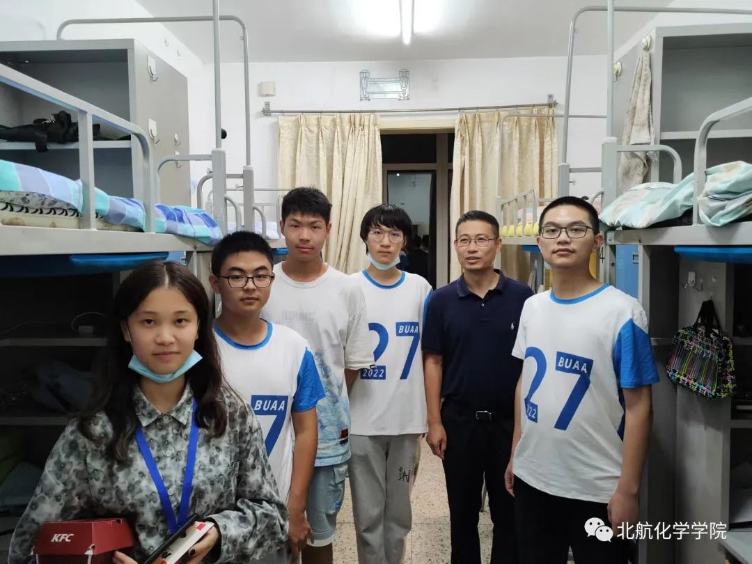 晚上20:00,班主任孙老师和聂导来到男生寝室进行走访。走访过程中,孙老师亲切地和同学们打招呼,询问同学们衣食住行是否习惯等问题。孙老师嘱咐同学们,之后的日子里在班级在寝室大家就是荣辱与共,一定要好好相处,并和同学们进行了合影。