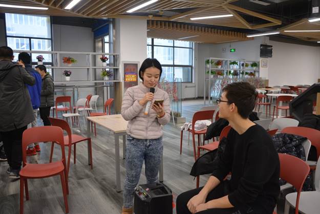 我们的活动也吸引到了别的学院的同学,物理学院的张欣怡学姐也来助阵,在现场与我们一起游戏,还与我们唱歌。