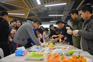 下午4点,包饺子活动正式开始。不得不说我们都是人才,不仅上得了厅堂,还下得了厨房,谢海韵和李响的娴熟手法获得了所有人的惊叹,他们为我们友情提供了大部分的饺子皮。由于一些同学还是第一次包饺子,觉得十分新奇,不断尝试,创造出许多形状非常有想法的“作品”,还特别可爱地展示给别人。在包饺子的过程中,我们分工明确,互帮互助,促进了友谊,食堂的二楼到处弥漫着我们的笑声…..