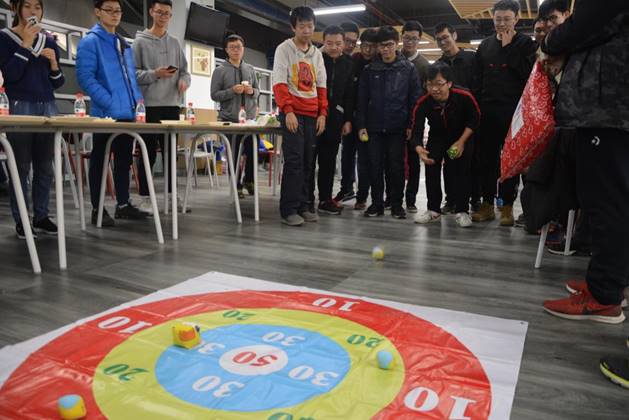 第一个游戏结束,大家兴致未减,于是第二个游戏在大家的呼声中便开始了,第二个游戏是扔沙包,扔到一个区域会得到对应的分,在一次次的激烈对决下,第一组取得了压倒性的胜利。在游戏中,我们和空间与环境学院的同学建立了很好的友谊,希望以后还可以一起玩耍。