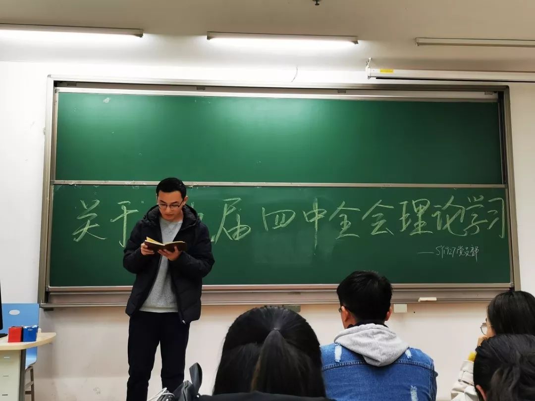 为积极响应党的号召,深入落实“不忘初心、牢记使命”主题教育,领会党的十九届四中全会精神。介于此,SY1927党支部于20191116日下午1600J3-103教室开展关于十九届四中全会理论学习主题教育。
