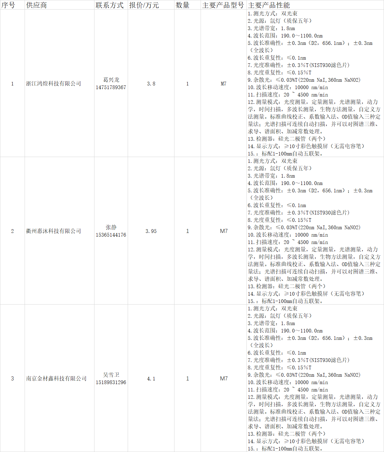 1. 采购名称:M7紫外可见分光光度计